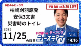 まっさんのなんでもブログ 【モーニングニュースライブ】11月25日(月)知ってほしい今日のニュースを厳選!いさ進一が生解説する新聞情報 ・ ニュースチェック【 10分解説 / 政治ニュース / 生配信 】をテキスト要約竹田常康氏との対談の振り返り柏崎刈羽原発の再稼働問題自民党・維新による安全保障論議災害時のトイレ問題公明党の質問主意書提出いさ進一氏の視点と姿勢