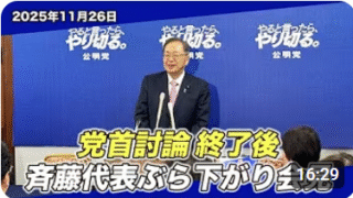 まっさんのなんでもブログ 公明党チャンネル「2025年11月26日 党首討論終了後 斉藤代表ぶら下がり会見」をテキスト要約