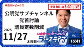 まっさんのなんでもブログ 【モーニングニュースライブ】11月27日(木)知ってほしい今日のニュースを厳選!いさ進一が生解説する新聞情報 ・ ニュースチェック【 10分解説 / 政治ニュース / 生配信 】をテキスト要約西田亮介氏とのトラブルへの謝罪質問主意書と党首討論(斉藤代表 vs 高市総理)政治と金の問題 vs 定数削減衆議院定数削減の議論熊野議員の裁判勝訴いさ進一氏の視点と姿勢
