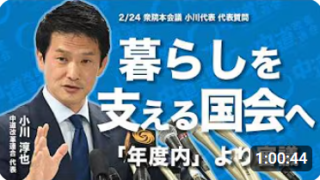 まっさんのなんでもブログ 動画を見る時間の無い方必見「 中道改革連合チャンネル 2026年2月25日 小川淳也代表 代表質問|暫定予算を提案「国民生活の安定」と「国会の原則」を両立」をテキスト要約