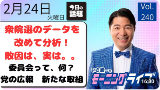 まっさんのなんでもブログ 動画を見る時間の無い方必見【モーニングライブ】2026年2月24日(火)知ってほしい今日のニュースを厳選!いさ進一が生解説する新聞情報【 15分解説 / 政治ニュース / 生配信 / 中道動画 】をテキスト要約
