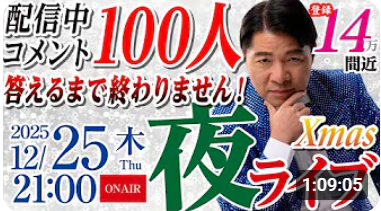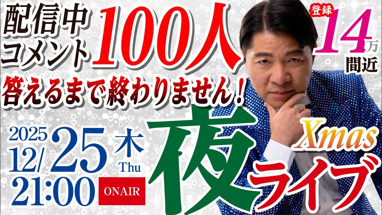 まっさんのなんでもブログ 【いさチャンネル 2025年12月25日 クリスマス 夜ライブ】「聖なる夜に登録者140000人突破なるか!?感謝の夜ライブトーク!配信中コメント100人答えるまで終わりません!」をテキスト要約