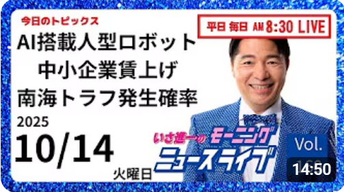 まっさんのなんでもブログ 【モーニングニュースライブ】10月14日(火)知ってほしい今日のニュースを厳選!いさ進一が生解説する新聞情報 ・ ニュースチェック【 10分解説 / 政治ニュース / 生配信 】をテキスト要約