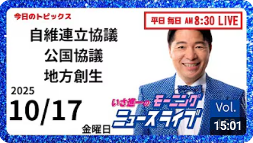 【モーニングニュースライブ】10/17(金)知ってほしい今日のニュースを厳選!いさ進一が生解説する新聞情報 ・ ニュースチェック【 10分解説 / 政治ニュース / 生配信 】