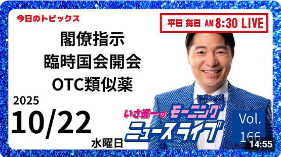 【モーニングニュースライブ】10/22(水)知ってほしい今日のニュースを厳選!いさ進一が生解説する新聞情報 ・ ニュースチェック【 10分解説 / 政治ニュース / 生配信 】