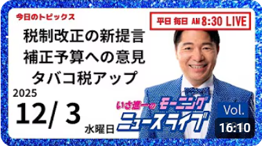 【モーニングニュースライブ】12/ 3(水)知ってほしい今日のニュースを厳選!いさ進一が生解説する新聞情報 ・ ニュースチェック【 10分解説 / 政治ニュース / 生配信 】