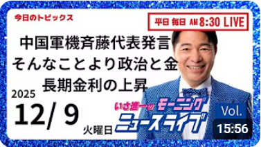 【モーニングニュースライブ】12/ 9(火)知ってほしい今日のニュースを厳選!いさ進一が生解説する新聞情報 ・ ニュースチェック【 10分解説 / 政治ニュース / 生配信 】
