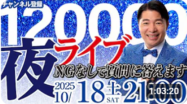 まっさんのなんでもブログ いさ進一チャンネル【登録者 120000人 突破】 10月18日(土)感謝の夜ライブトーク NGなしで質問返しします! ファンもアンチも大歓迎!【特別配信】をテキスト要約