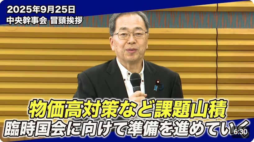2025/9/25 中央幹事会 斉藤代表冒頭挨拶