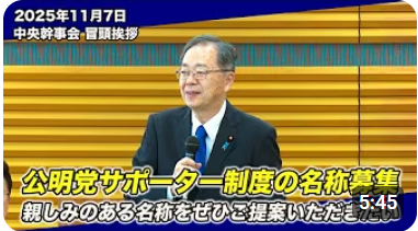 まっさんのなんでもブログ 公明党チャンネル「2025年11月7日 中央幹事会斉藤代表冒頭挨拶」をテキスト要約