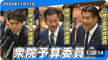 2025/11/11 衆院予算委員会 岡本三成衆院議員・中野洋昌衆院議員・山崎正恭衆院議員