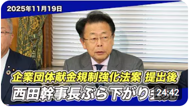 まっさんのなんでもブログ 公明党チャンネル「2025年11月19日 企業団体献金規制強化法案提出後 公明国民共同ぶら下がり会見」をテキスト要約