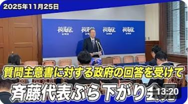 2025/11/25 質問主意書に対する政府の回答を受けて 斉藤代表ぶら下がり会見