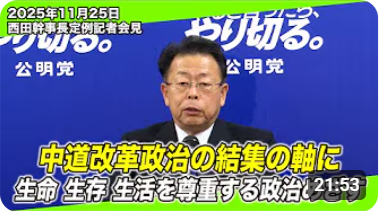 まっさんのなんでもブログ 公明党チャンネル「2025年11月25日 西田幹事長 定例記者会見」をテキスト要約