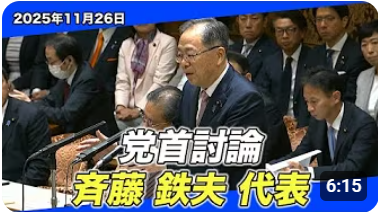 まっさんのなんでもブログ 公明党チャンネル「2025年11月26日 党首討論 斉藤鉄夫代表」をテキスト要約