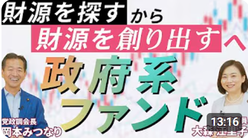 <ときどきコメナビ >【第1回 テーマ】 「政府系ファンド〜財源を『探す』から『創り出す』へ」【出演者】岡本 三成 党政調会長大森 江里子 衆院議員(東京/比例)【動画目次】00:00 オープニング01:03 参院選公約「政府系ファンド」創...