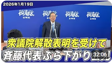 まっさんのなんでもブログ「公明党チャンネル 2026年1月19日 衆議院解散表明を受けての斉藤代表ぶら下がり会見」をテキスト要約