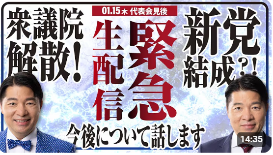 【緊急生配信 再び】衆議院解散へ!新党結成の行方と最新情勢は?いさ進一の今後について全て話します