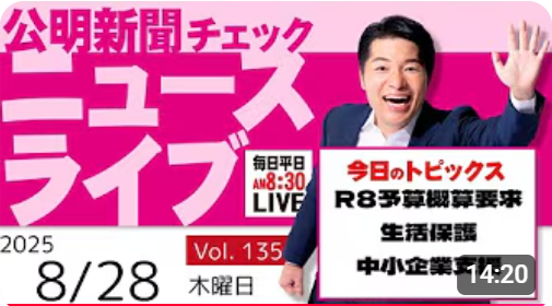 【ニュースライブ】 8/28(木)いさ進一の公明新聞記事チェック 今日のニュースを厳選して生解説【10分解説 / ライブ配信 / 新企画】