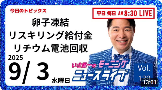 【モーニングニュースライブ】9/ 3(水)知ってほしい今日のニュースを厳選!いさ進一が生解説する新聞情報 ・ ニュースチェック【 10分解説 / 政治ニュース / 生配信 】