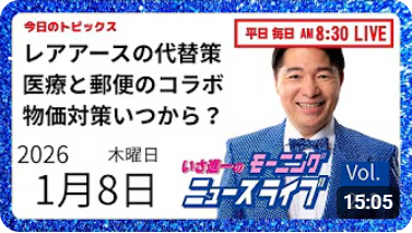 まっさんのなんでもブログ【モーニングニュースライブ】2026年1月8日 知ってほしい今日のニュースを厳選!いさ進一が生解説する新聞情報 ・ ニュースチェック【 10分解説 / 政治ニュース / 生配信 】をテキスト要約