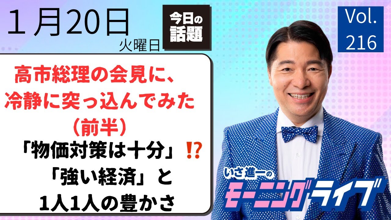 【モーニングライブ】1/20(火)話題の今日のニュースを厳選!いさ進一が生配信で新聞情報 ・ ニュースをチェック【 徹底解説 / 政治ニュース / 朝ライブ 】