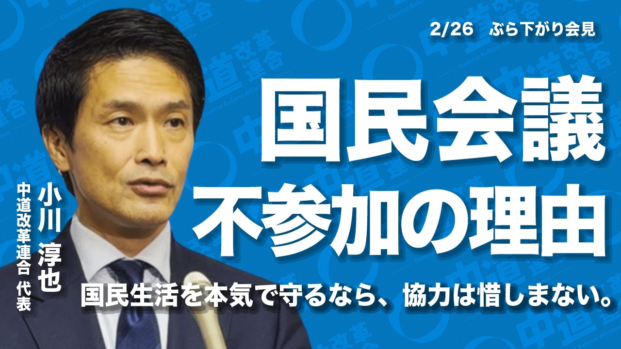 本日開催された「国民会議」について、中道改革連合は参加を見送りました。私たちが目指しているのは、政局ではなく、国民生活の向上です。消費減税。そして、給付付き税額控除。いずれも生活を支える重要な政策です。だからこそ――・会議体の位置付けは明確...