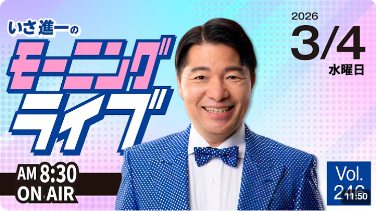 まっさんのなんでもブログ 動画を見る時間の無い方必見【モーニングライブ】2026年3月4日(水) 知ってほしい今日のニュースを厳選!いさ進一が生解説する新聞情報【 15分解説 政治ニュース 生配信 】をテキスト要約