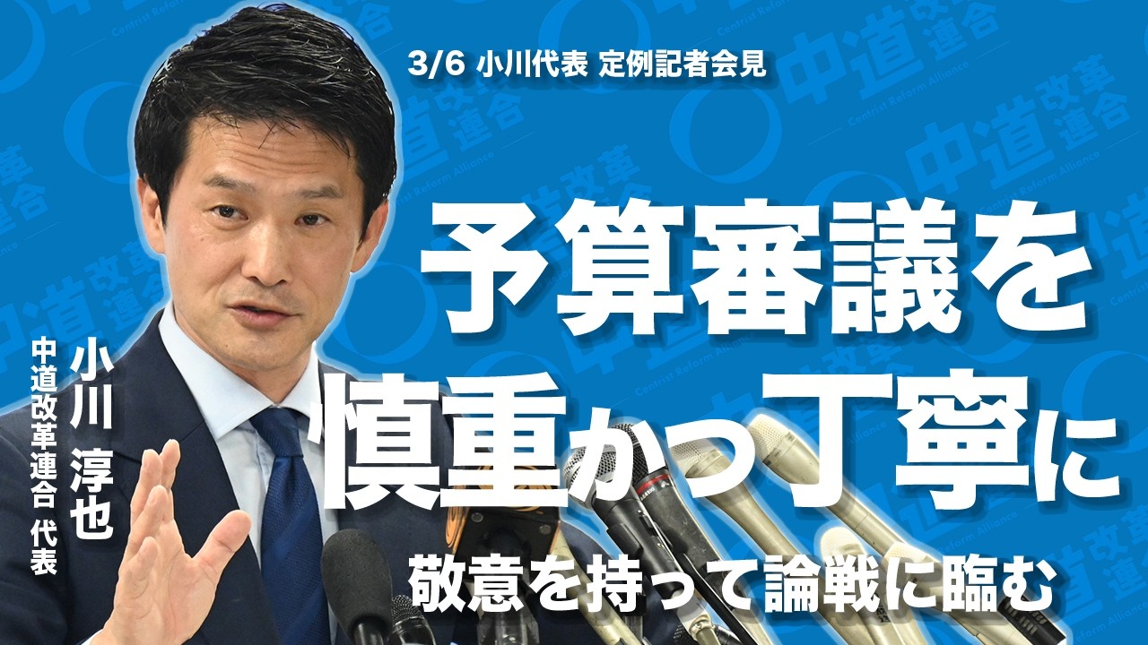 中道改革連合の小川淳也代表による定例会見です。会見では、予算審議の進め方への見解、防衛装備品の海外移転をめぐる課題、米国とイランの攻撃応酬を受けた日本外交のあり方、社会保障国民会議への参加姿勢、党の立て直しや惜敗者支援の考え方などについて語...
