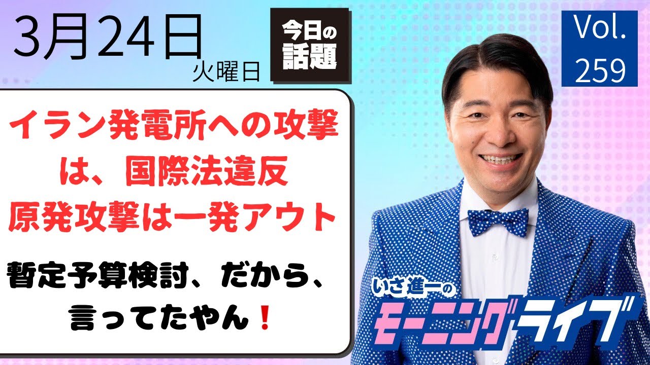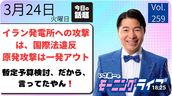 まっさんのなんでもブログ 動画を見る時間の無い方必見【モーニングライブ】2026年3月24日(火)知ってほしい今日のニュースを厳選!いさ進一が生解説する新聞情報【 15分解説 / 政治ニュース / 生配信 / 中道動画 】をテキスト要約
