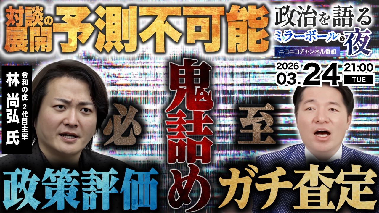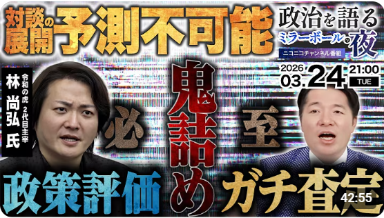 - 中道改革連合の政策を「令和の虎」方式で林社長が審査。
