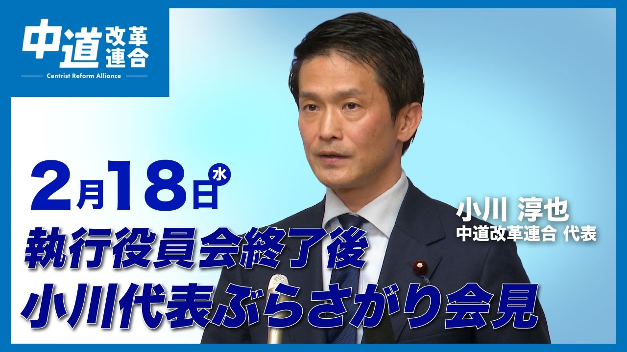 まっさんのなんでもブログ 動画を見る時間の無い方必見「中道改革連合チャンネル 2026年2月18日 執行役員会終了後 小川代表ぶら下がり会見」をテキスト要約