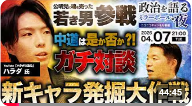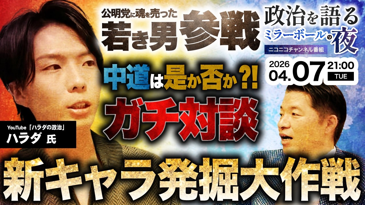 まっさんのなんでもブログ 動画を見る時間の無い方必見「伊佐チャンネル ミラーボールの夜 2026年4月7日「【vs若者代表】公明党に魂を売った若き男が殴り込み⁈発信センスを公開ジャッジ!中道の売り方をガチ議論。ゲストは”ハラダの政治”ハラダ氏。」をテキスト要約
