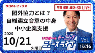 まっさんのなんでもブログ 公明党チャンネル2025年10月21日 高市新総理表敬訪問後 斉藤代表ぶら下がり会見をテキスト要約21日、首班指名選挙が行われ、高市早苗・自民党総裁が内閣総理大臣に指名されました。その後、国会内の公明党控室を訪れ、斉藤鉄夫代表に就任の挨拶を行いました。挨拶後、斉藤代表が記者団のぶら下がり取材に応じました。高市新総理への祝意と今後の姿勢野党としての立場と戦略議員定数削減への見解国会内の多数派形成と対応