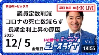 まっさんのなんでもブログ 【モーニングニュースライブ】10月5日(水)知ってほしい今日のニュースを厳選!いさ進一が生解説する新聞情報 ・ ニュースチェック【 10分解説 / 政治ニュース / 生配信 /公明党動画】をテキスト要約