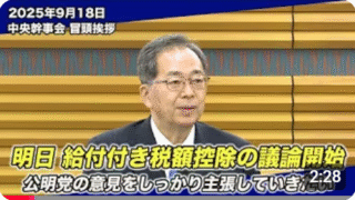 公明動画をテキスト要約 まっさんのなんでもブログ 公明党チャンネル 「9月18日 斉藤代表は中央幹事会の冒頭挨拶で、給付付き税額控除について言及しました。」をテキストで要約。 まっさんのなんでもブログ 公明党チャンネル 「9月18日 斉藤代表は中央幹事会の冒頭挨拶で、給付付き税額控除について言及しました。」をテキストで要約。斉藤代表の発言の主旨ポイント整理三党会談の目的制度の意義と背景技術的課題の認識物価高対策との連携政治資金の透明性強化 2025.09.19 公明動画をテキスト要約